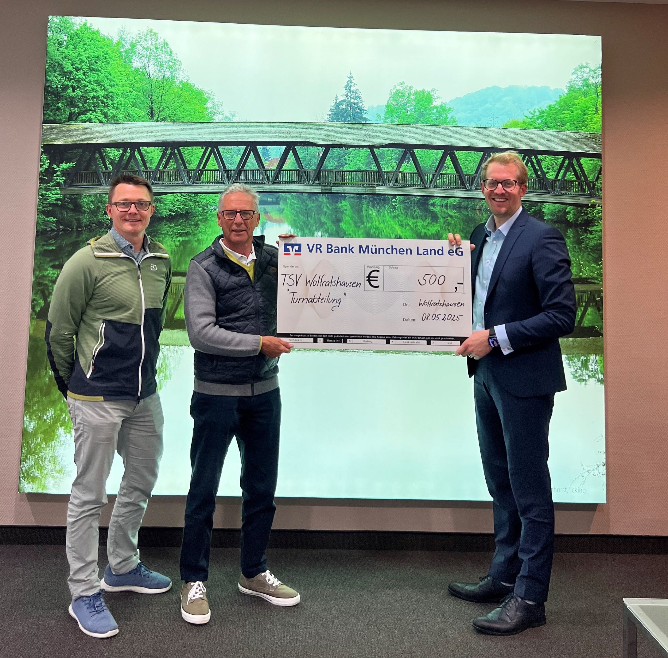 Wir möchten uns ganz herzlich bei der VR Bank München Land für die Spende von 500€ bedanken. Damit unterstützt die VR-Bank München Land unsere Jugend für die Fahrt zum diesjährigen Deutschen Turnfest in Leipzig. Für die Turnabteilung starten 28 Jugendliche in verschiedensten Wettkämpfen. Wir wünschen viel Erfolg und viel Spaß.